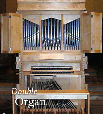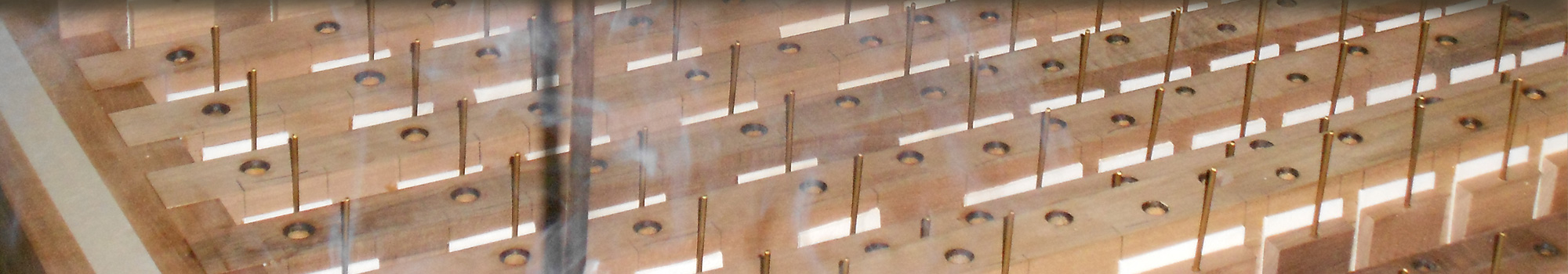 The sounds of these instruments are clean, powerful and brilliant like Ripieno and Trumpet but sweet and tender as well like the sound of Bourdon in cedar wood, Chimney Flute and Basancia¹ in cypress wood.